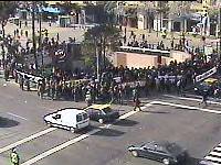 12:46 Con el fin de impedir que los grupos que se intentan acercar a La Moneda logren su objetivo, un gran contingente de Carabineros se encuentra apostado en las cercanías del Palacio de Gobierno.