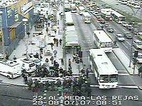 06:52 En la principal arteria de la capital, la Alameda, es posible apreciar una frecuencia normal del transporte urbano.