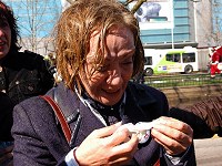 ![]() La dirigenta María Rozas quedó completamente empapada. (Foto: UPI) |
