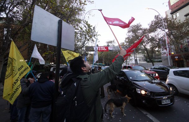 Trabajadores en huelga protestaron sobre señal del tránsito en Vicuña Mackenna