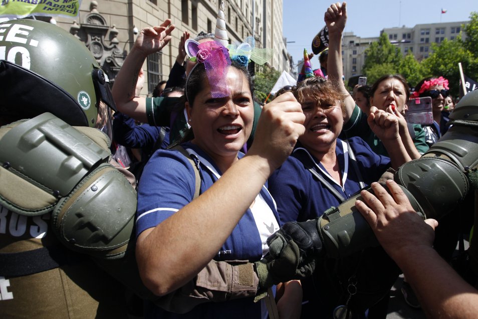 Trabajadores públicos protestan frente a La Moneda en jornada de paro nacional