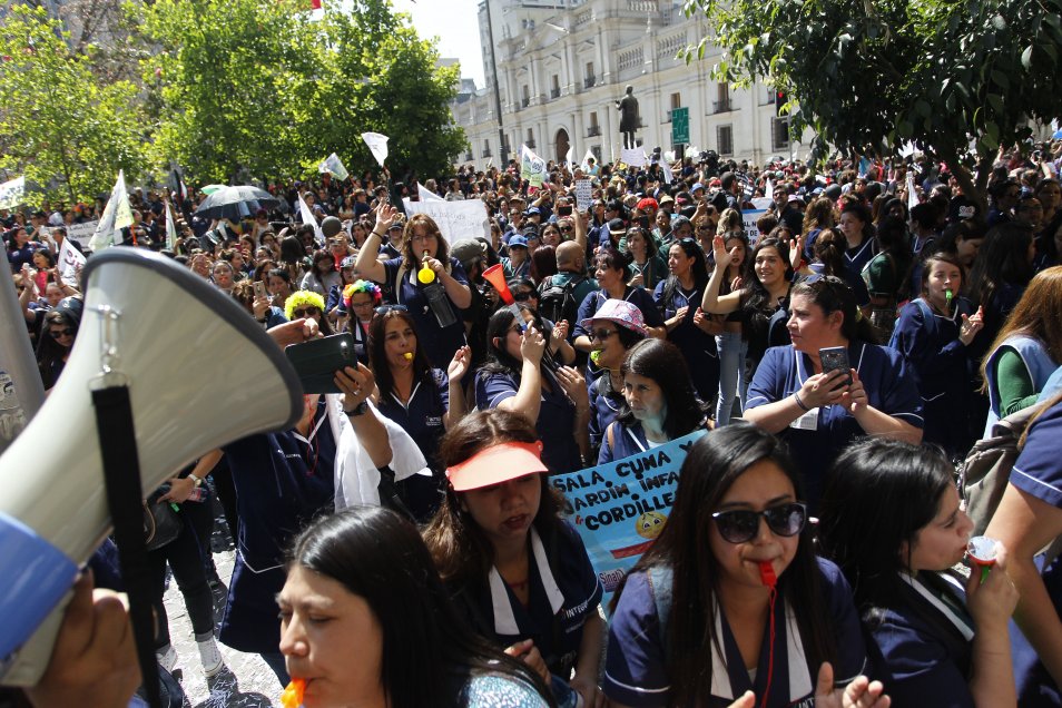 Trabajadores públicos protestan frente a La Moneda en jornada de paro nacional