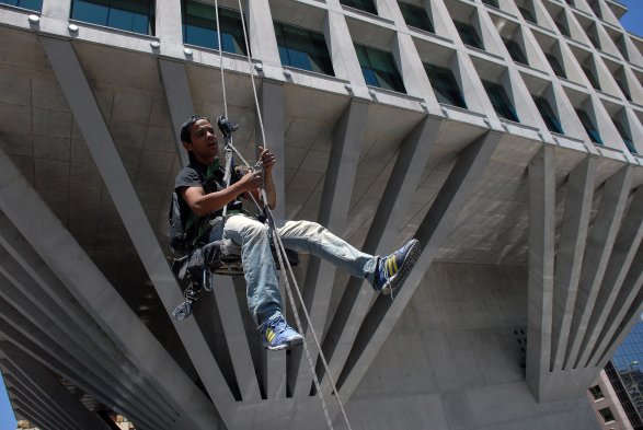 Tópicos: País | Trabajo Hombre se colgó desde un edificio para protestar por su despido Publicado: Martes, 19 de Febrero de 2013 7 de 10 Un hombre, protestando por su despido, se colgó desde un edificio en Las Condes. El hecho movilizó a Carabineros y Bomberos. Un hombre, protestando por su despido, se colgó desde un edificio en Las Condes. El hecho movilizó a Carabineros y Bomberos.UPI