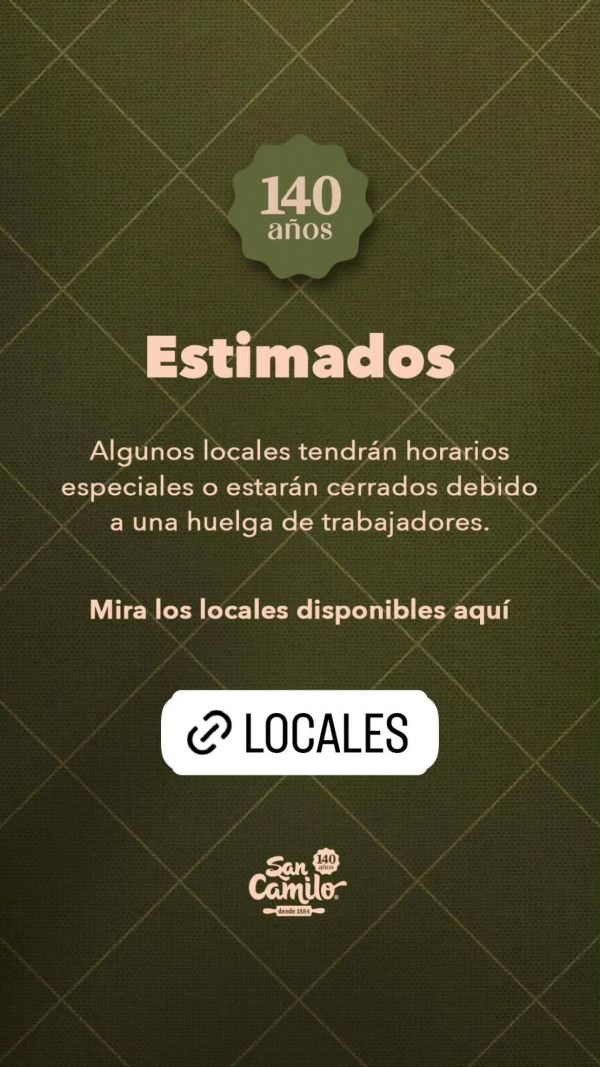 En sus redes sociales, la empresa advirtió que sus locales estarán con "horarios especiales" o cerrados, "debido a una huelga de trabajadores".