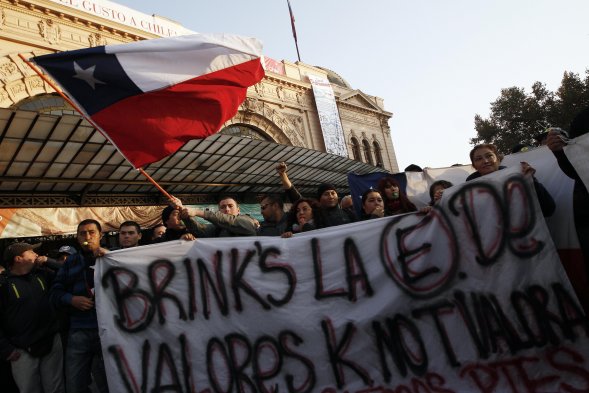 Medio millar de trabajadores de Brinks y Prosegur marcharon en Santiago