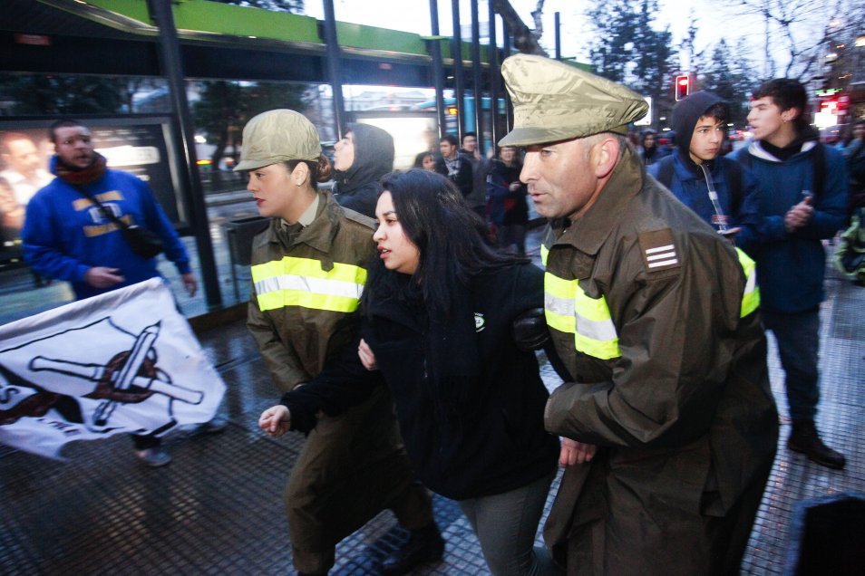 Un grupo de estudiantes secundarios y universitarios se encadenó al frontis del edificio del Ministerio de Educación como protesta en contra del Estatuto Laboral Juvenil. La manifestación provocó una rápida reacción de Carabineros que detuvo a cerca de una decena de personas.