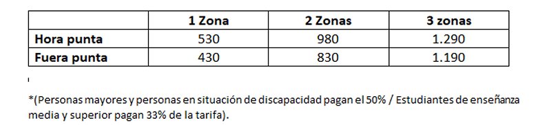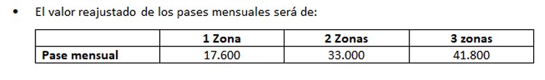 El reajuste se traducirá, en la práctica, en que habrá un aumento de 30 pesos en la tarifa del viaje en una zona, de 30 también para viajes entre dos zonas, y de 40 pesos en el valor del recorrido en las tres zonas.