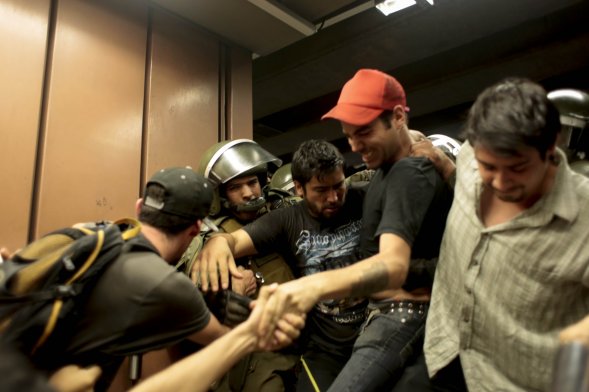 En la tarde de este martes se registraron incidentes en la estación Baquedano del Metro, en el marco de un nuevo llamado a evadir el pago por el alza de 20 pesos en la tarifa en la hora punta del servicio.