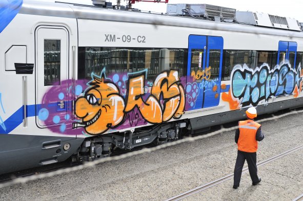 Rayan nuevos vagones de Rancagua Express Publicado: Domingo, 23 de Noviembre de 2014 2 de 5 Solo ayer llegaron a Chile y hoy amanecieron rayados los nuevos vagones de EFE para el tren Rancagua Express. Solo ayer llegaron a Chile y hoy amanecieron rayados los nuevos vagones de EFE para el tren Rancagua Express.UNO