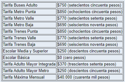 Este es el desglose de las tarifas ajustadas, por modo de transporte, tipo de usuario y horario: