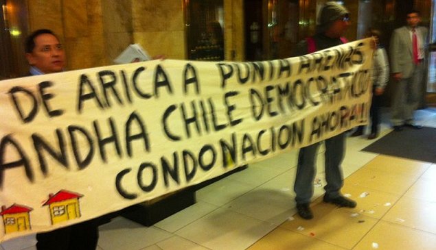 Según explicaron en un comunicado, los manifestantes dicen representar a cerca de 6.000 familias con orden de desalojo por créditos con BancoEstado.
