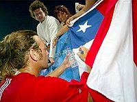 ![]() Luego de la victoria, el viñamarino se dio tiempo para compartir con la hinchada chilena presente en Grecia. (Foto: Max Montecinos/Chiledeportes) |