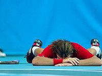 ![]() Nicolás Massú celebró arrojándose sobre el cemento ateniense luego de asegurar su paso a las semifinales del tenis olímpico. (Foto: EFE) |