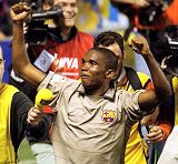 ![]() Samuel Eto'o, goleador del equipo, marcó el tanto que le dio el campeonato a los azulgrana. (Foto: EFE) |