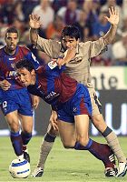 El conjunto azulgrana aprovechó los puntos cedidos por Real Madrid en su visita a Sevilla, y empató 1-1 frente a Levante para asegurar la corona de la liga española 2004-2005.