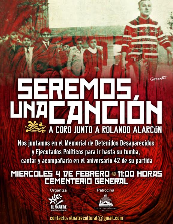 A 42 años de su muerte, este miércoles 4 de febrero se realizará un concierto homenaje a Rolando Alarcón en el Cementerio General. La caravana comenzará en el Memorial de Detenidos Desaparecidos y Ejecutados Políticos y se dirigirá hacia la tumba del músico.