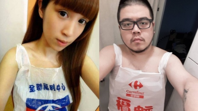 Nueva moda en Taiwan: Jóvenes se toman selfies vestidos con bolsas de supermercados