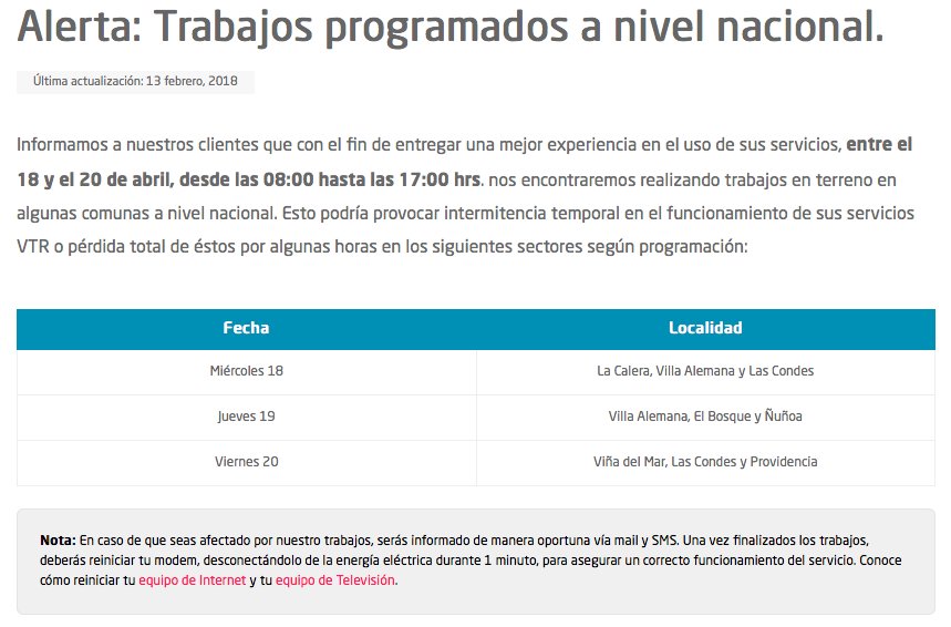 La cableoperadora VTR anunció posibles interferencias en su servicio debido a trabajos programados para los días 18, 19 y 20 de abril.