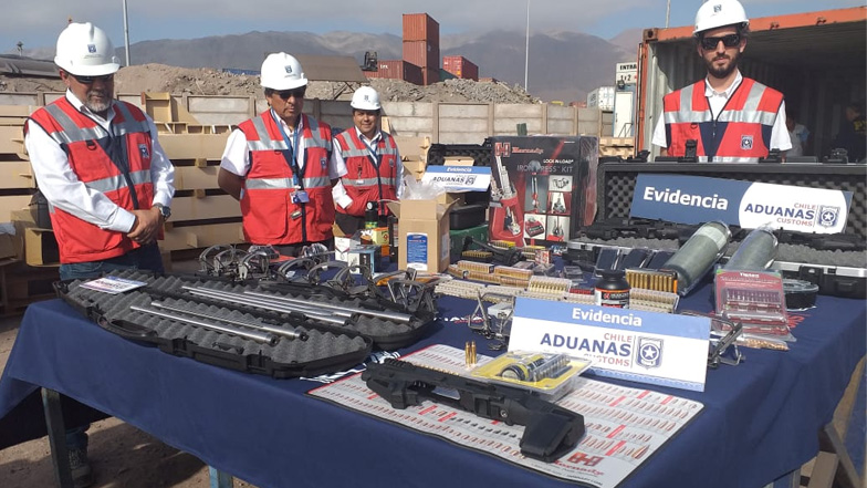El fiscal regional de Tarapacá, Raúl Arancibia, expuso que entre los artículos figuran seis sets considerados como gatillos, percutor, empuñadura y estructura de una pistola, a lo que se suma el mismo número de cañones y piezas que permiten convertir una pistola en fusil.