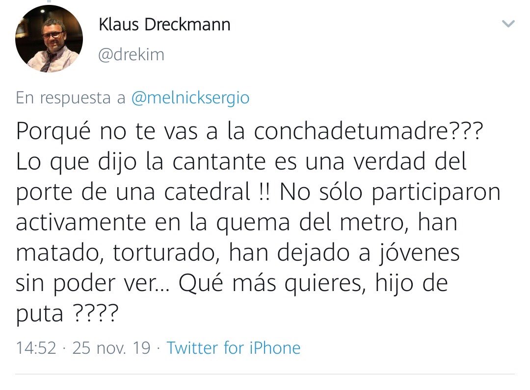 Klaus Dreckmann también escribió en sus redes que uniformados han torturado y asesinado a personas en el último mes y medio.