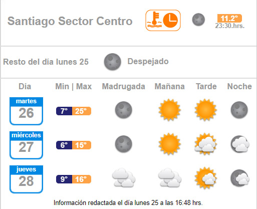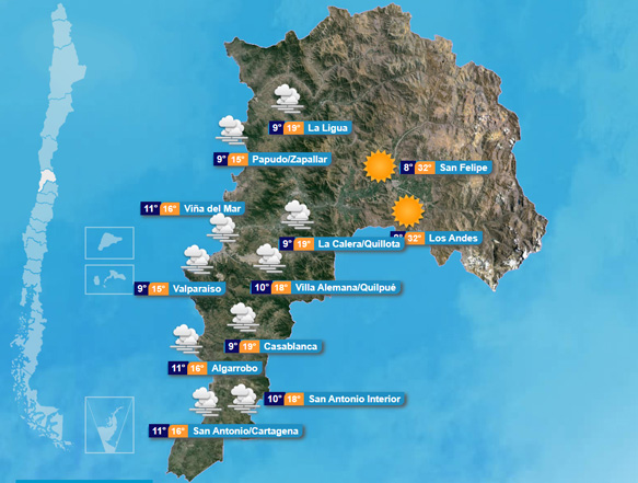 Sin embargo, "mañana esperamos, al menos en la costa, una disminución en torno a 10 grados, así de abrupto, porque ya ingresan nubes, y en los próximos días hay una congruencia entre vaguada costera y un sistema que viene a aproximando desde el oeste, que va a bajar mucho más las temperaturas", adelantó Zúñiga.