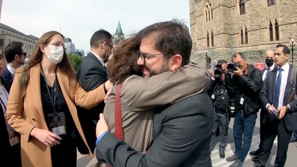 Viajes al exterior "¡Un sueño cumplido verlo!": Boric se acercó a quienes fueron a verlo al parlamento canadiense