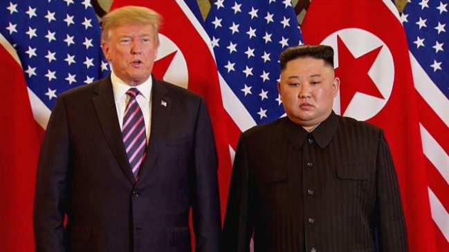 El líder norcoreano, Kim Jong-un, y el presidente estadounidense, Donald Trump, durante el inicio de la segunda...