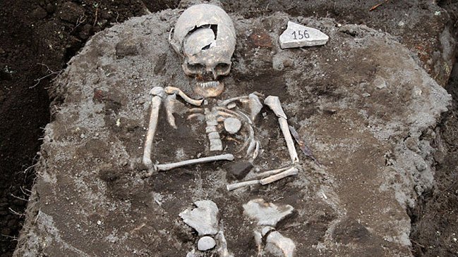 Arqueólogos hallaron el esqueleto de un hombre con un cuchillo atravesado en el pecho y una pierna amputada.