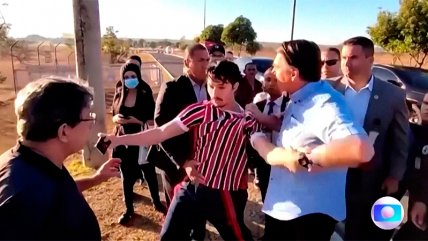 El presidente de Brasil, Jair Bolsonaro, tuvo un polémico enfrentamiento en que forcejeó e intentó arrebatarle el...
