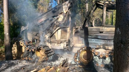 Cuatro camiones de carga forestal fueron quemados en un atentado incendiario registrado este sábado en el Fundo Santa...