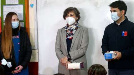 La ministra de Salud, Ximena Aguilera, junto al seremi de Salud Metropolitano, Gonzalo Soto, y el alcalde de Estación...
