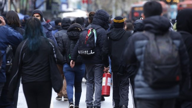 Varios estudiantes fueron detenidos este viernes en una protesta en la Dirección General de Carabineros, en el centro...