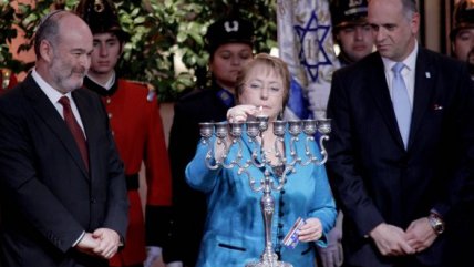 El Patio de Las Camelias de La Moneda fue escenario de la celebración judía de Januca, en que la participó la...