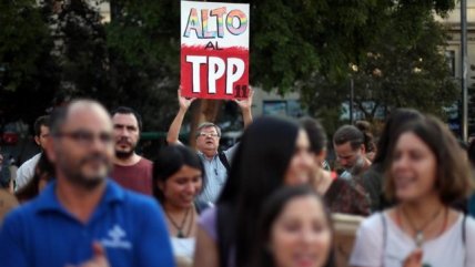 Manifestantes de la plataforma Chile Mejor sin TLC se manifestaron frente a la Cancillería contra la próxima firma...