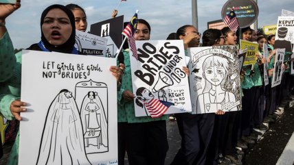 Un grupo de activistas y escolares se reunieron este martes en el exterior del edificio del parlamento para entregar...