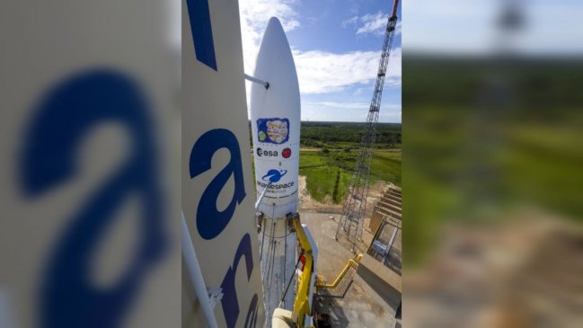 Sacerdotes ortodoxos dirigieron este miércoles un servicio de bendición frente al cohete de refuerzo Soyuz con la...