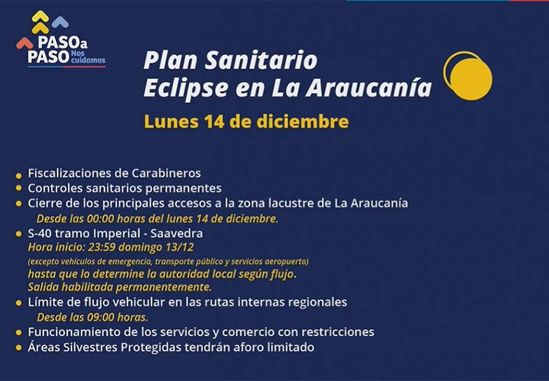 El Ministerio de Salud informó un plan preventivo para enfrentar el próximo 14 de diciembre el eclise solar, que tendrá a la Región de La Araucanía como protagonista.