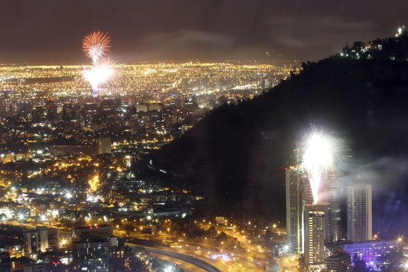 El principal show pirotécnico en Santiago se vivió, como todos los años, en la Alameda en torno a la Torre Entel. Estas son algunas imágenes de la bienvenida al 2016