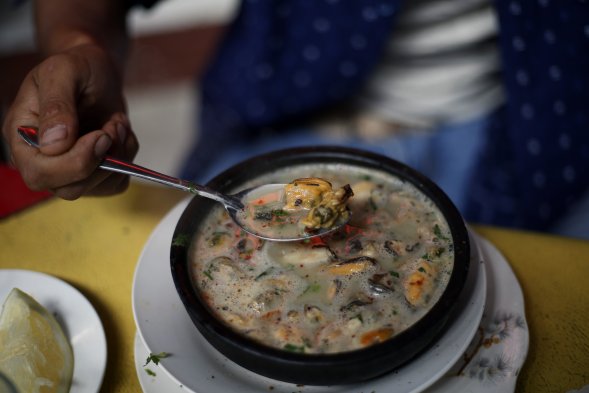 Como es tradicional, cientos de personas llegan desde las primeras horas de esta mañana al Mercado Central de Santiago buscando pasar la resaca con un reponedor mariscal.