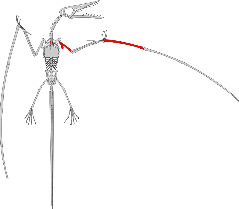 "Estos pterosaurios tenían envergaduras de alas, de punta a punta, de hasta 1,8 o 2 metros. Nuestro espécimen es bastante grande, comparable a Rhamphorhynchus, que es el miembro más grande de esta familia, o quizás más grande".
