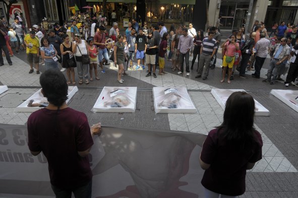 Bandejas de "carne humana" sorprendieron a peatones en Paseo Ahumada
