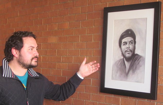 El CORE Rojas muestra orgullos el cuadro del guerrillero argentino-cubano. (Foto: Mauricio Valdés)