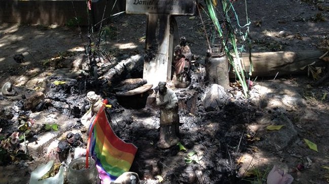 Mientras que Óscar Rementería, vocero del Movilh, divulgó a través de sus cuentas de Twitter y Facebook las fotografías que evidencian el atentado que sufrió la animita del joven homosexual que falleció a raíz de un ataque homofóbico en marzo de 2012.