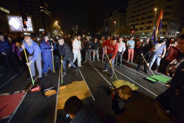 El vocero de Gobierno, Álvaro Elizalde, y los líderes del Movilh pintaron en la noche de este domingo un paso de cebra con los colores del arcoiris en Alameda con Ahumada, en el centro de Santiago.