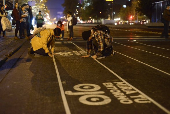 El vocero de Gobierno, Álvaro Elizalde, y los líderes del Movilh pintaron en la noche de este domingo un paso de cebra con los colores del arcoiris en Alameda con Ahumada, en el centro de Santiago.