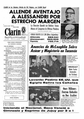 El diario argentino Clarín lanzó el sitio tapas.clarin.com, en que revisa sus portadas desde el 28 de agosto de 1945. Acá, algunas que consignaron a Chile como protagonista: El triunfo del socialista Salvador Allende fue la noticia más destacada del 5 de septiembre de 1970.