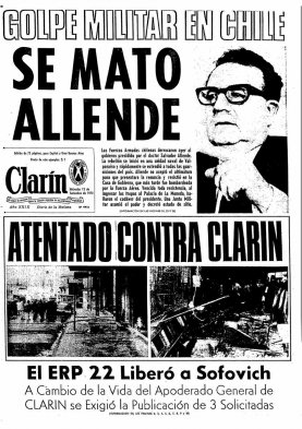 El diario argentino Clarín lanzó el sitio tapas.clarin.com, en que revisa sus portadas desde el 28 de agosto de 1945. Acá, algunas que consignaron a Chile como protagonista: El golpe militar y la muerte de Salvador Allende.