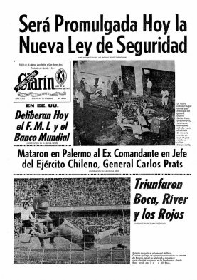 El diario argentino Clarín lanzó el sitio tapas.clarin.com, en que revisa sus portadas desde el 28 de agosto de 1945. Acá, algunas que consignaron a Chile como protagonista: El asesinato en Buenos Aires del ex comandante en jefe del Ejército chileno Carlos Prats, el 30 de septiembre de 1974.