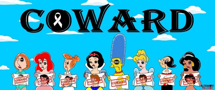 Bajo el lema "cobardes", Lois, Sirenita, Wilma, Blancanieves, Marge, Cenicienta, Olivia y Jazmín se unieron a la campaña contra la violencia a la mujer en el Día Internacional contra la Violencia de Género.