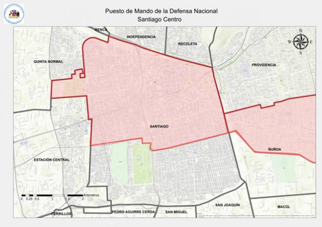 | En la R.M., la medida de confinamiento rige completamente en Las Condes y parcialmente en Santiago (sector norte), Ñuñoa (norte) y Puente Alto (poniente).